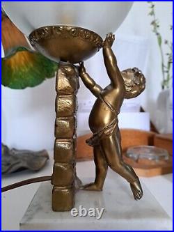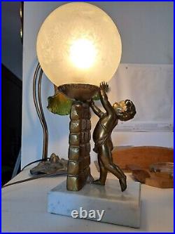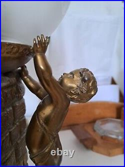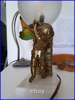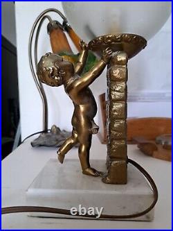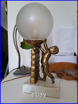 Art Deco/Cherub Lamp Putti/Circa 1930 / MARBLE Stand / Gold Metal / RARE