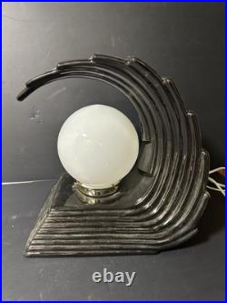 Vintage Beautiful MID Century Wave Over Moon Ceramic Art Deco Tv Globe Lamp