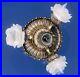 Vtg Mid-Century L&L WMC Brass 4 Light Ceiling Fixture Frost Glass Rose Shades